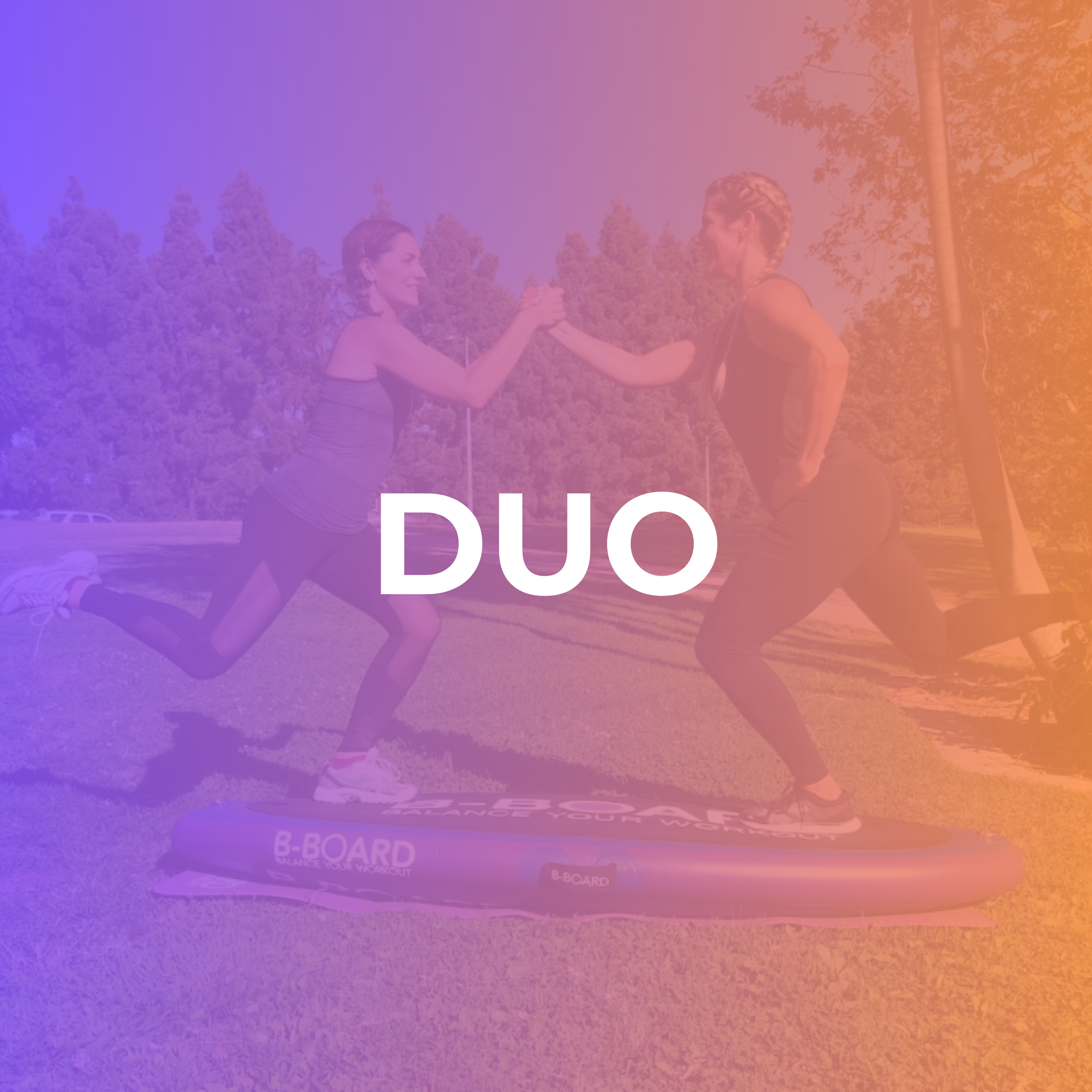 Train with a friend in your pool with AQUA STAND UP® or in your backyard with B-BOARD® in a motivating duo format.